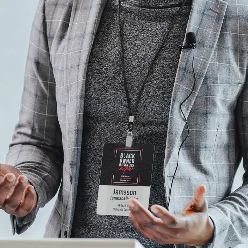 You order pre-printed badges with your logo and event branding, then use a simple label printer to add attendee names on-site. This approach gives you professional-looking badges without needing fancy equipment. Your badges look branded and polished, but you only print names for people who actually show up. Most event planners and volunteers can handle this setup themselves with minimal training.