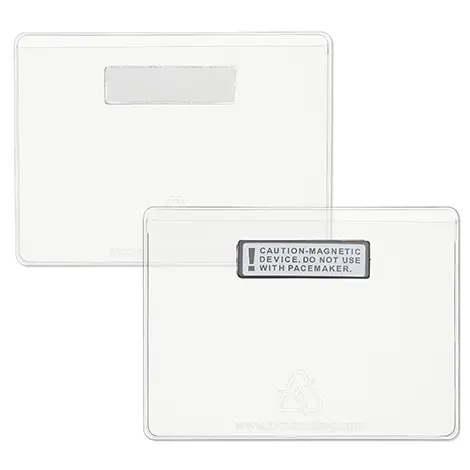 A budget-friendly vinyl badge holder that features a powerful magnet, protecting clothing while clearly displaying attendee information.