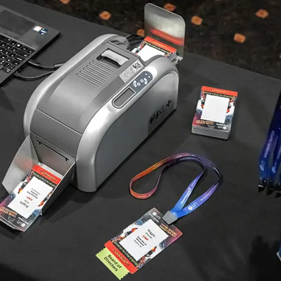 Creates vivid, professional, full-color credentials with photos, logos, and access information as attendees arrive. This allows security to spot key details while keeping registration lines moving fast.